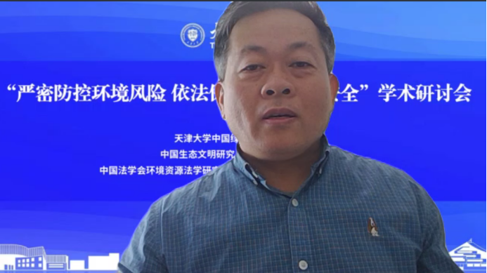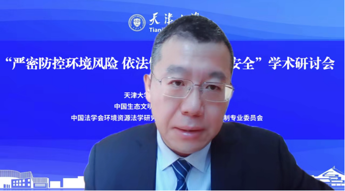 天津大学党委常委、副校长郑刚出席会议并致辞。他指出,天津大学法学院近年来的成长与发展离不开社会各界的支持与关爱,特别是中国生态文明研究与促进会、中国法学会环境资源法学研究会与兄弟院校的大力支持。本次研讨会在学习贯彻党的二十大精神的基础上深入探讨严密防控环境风险、依法保障国家生态安全,具有强烈的现实关怀与理论价值。期待参与此次研讨会的各位专家学者通过学术交流和思维碰撞形成丰硕的学术成果,共同为我国生态文明建设贡献力量。