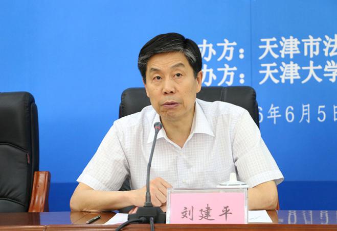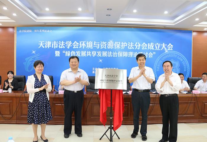 天津市人大常委会党组副书记、副主任、天津市法学会会长散襄军与天津大学党委书记刘建平等领导同志和学者代表共同为天津市法学会环境与资源保护法分会揭牌。