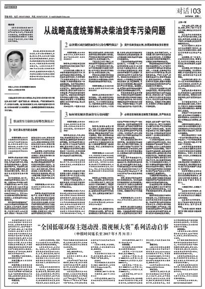 中国环境报:解决柴油货车污染,如何从体制上、战略上加以推进?